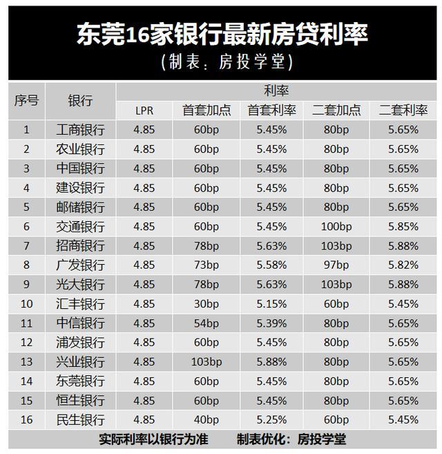 (具体参看前文图表“东莞16家银行较新利率表”)
