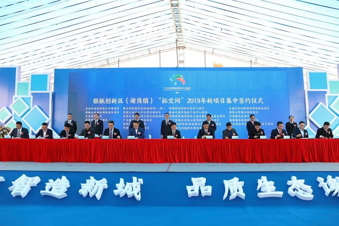 12月30日,谢岗镇举行银瓶合作创新区(谢岗镇)“拓空间”2019年新项目集中签约仪式。这是谢岗镇继去年总投资183亿元55个项目之后,今年引进的22个全新项目,总投资约105亿元。这些项目的成功签约,将为谢岗镇进一步加快高质量发展注入强大动力。