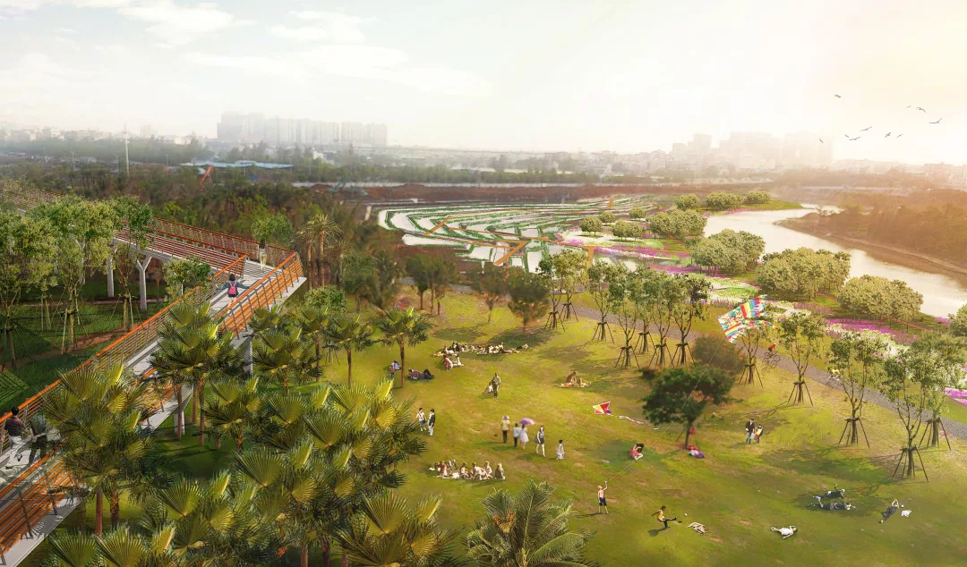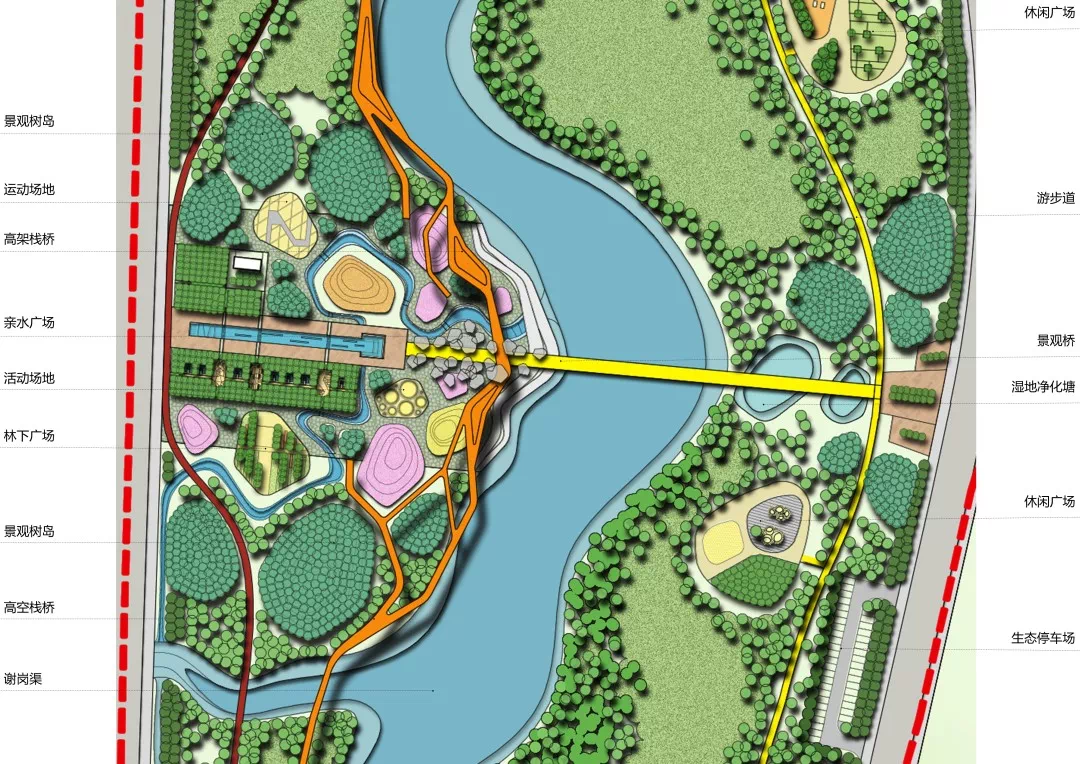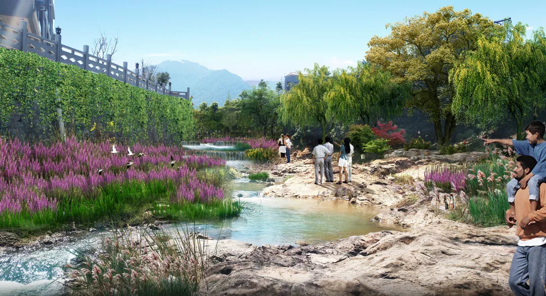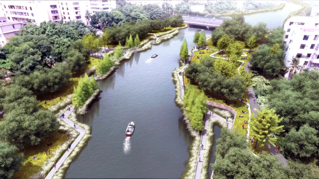 该项目包括两方面内容:一是规划改造提升谢岗截洪渠、大厚截洪渠、黎村截洪渠等三条截洪渠的两岸水生态环境,改造堤防,建设滨水游憩设施,改善自然生态景观,实施总长3.78公里、平均宽200-220米、面积81.68公顷(含水体面积19.21公顷)。