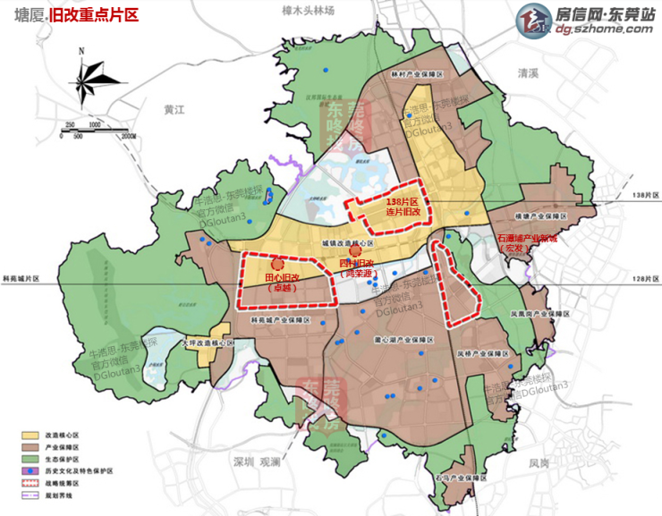 塘厦近期推出的大型旧改项目主要包括:四村旧改(鸿荣源),田心旧改(先进),石潭埔产业新城(宏发),138片区连片旧改等。