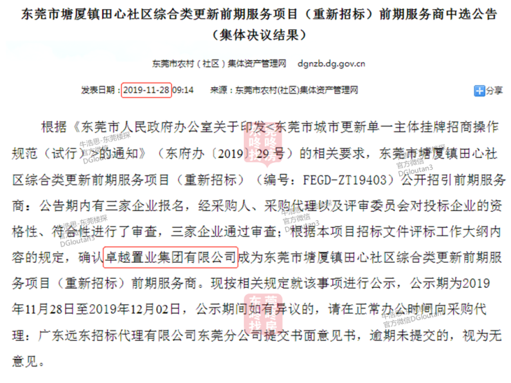 田心旧改项目具体是指田心社区综合类更新单元,该项目确认由先进作为前期服务商。