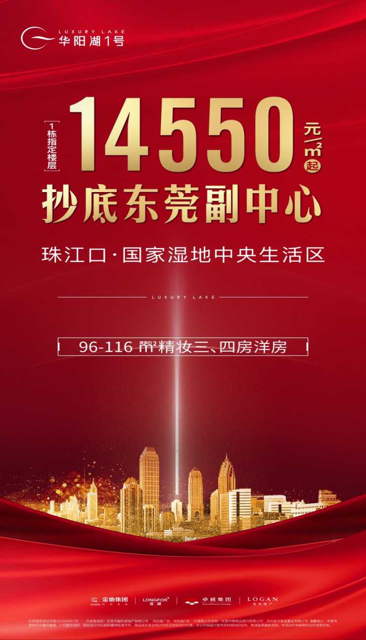 据统计,该片区的华阳湖1号更是凭借华阳湖景区的天然优势,成为东莞楼市成交主力军。14550元/㎡起(1栋特定房源)至低价爆燃市场,96-116㎡精妆三四房超优性价比,自是东莞买房的不二之选!