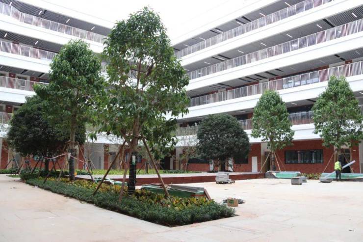 1.绿色生态的校园景观。一进入校园,小编就闻到阵阵花香。据工作人员介绍,目前施工人员正在校园主次入口、教学区、操场等地方种植大腹木棉、朴树、桂花、铁冬青、凤凰木等30多个品种的植物,届时绿植面积将超过校园的三分之一。