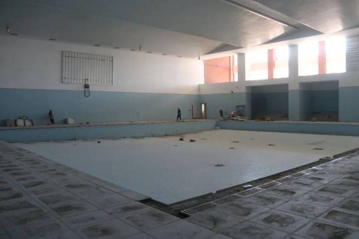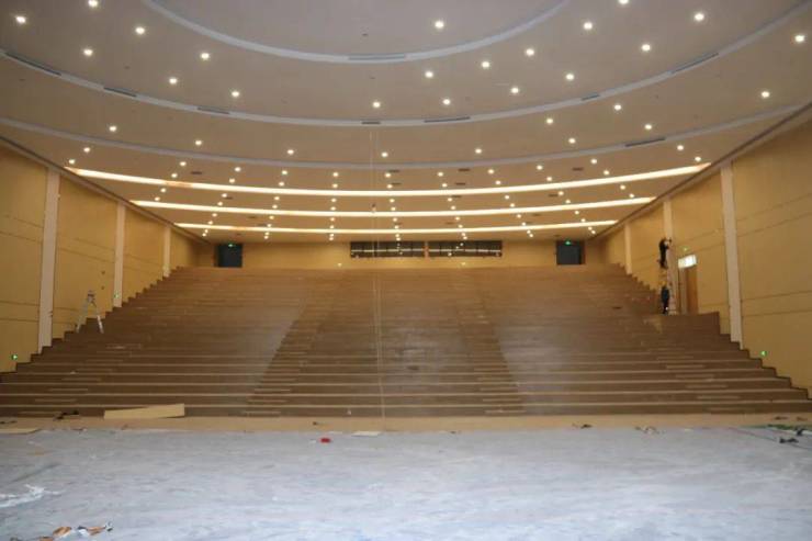 3.融合舒适的训练场馆。体育馆不仅有篮球场、足球场、排球场,还拥有一个室内游泳池,为学子提供广阔的活动空间。目前,顶层的操场正在进行种植绿草的工序;游泳池正加快铺设净水、排水等系统。