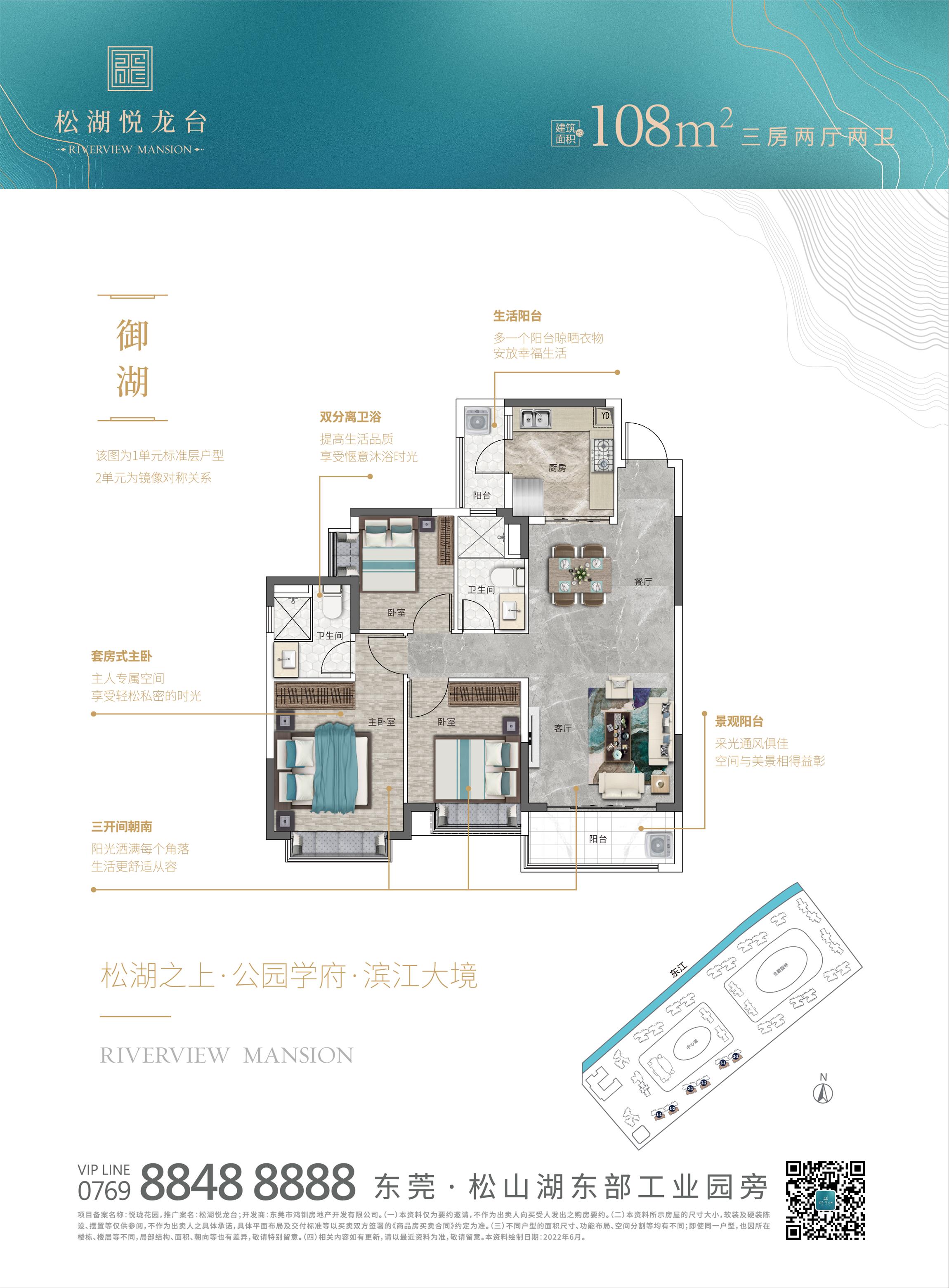 东莞松湖悦龙台推出建面约94-108㎡湖园双景三房,均价约18500元/㎡,带装修交付。