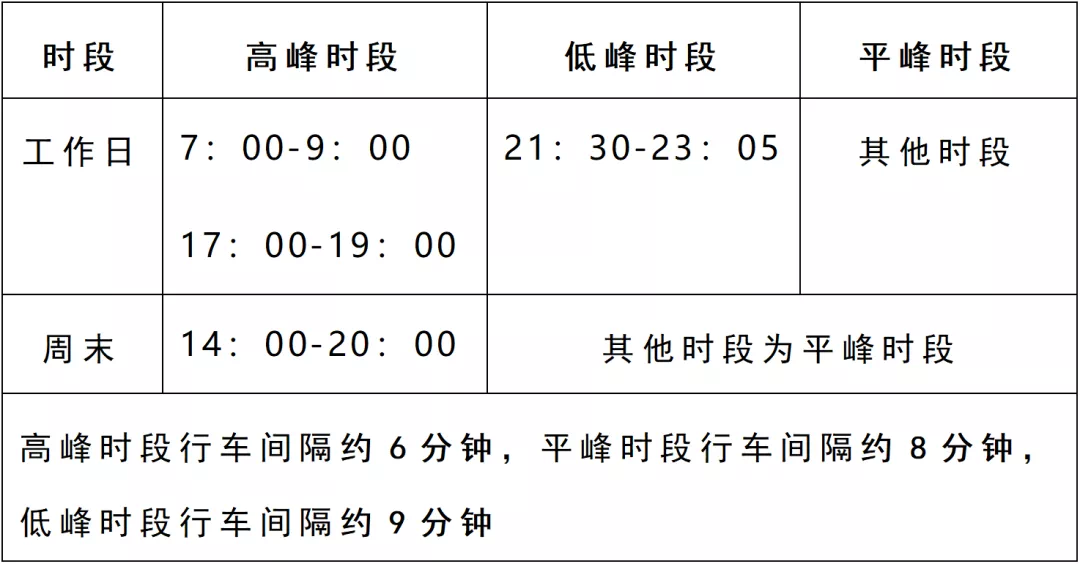 2、2号线各站首末班车、开关站时间保持不变3、行车间隔