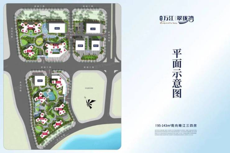 规划户型为约95-143㎡南向江景三四房,均为双阳台结构,通透无遮挡,视野开阔,通风采光俱佳。
