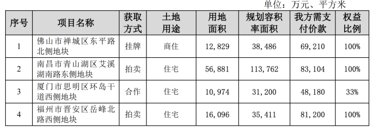 在新增项目方面,保利发展5月份新增4个项目,分别位于佛山、南昌、厦门和福州,总计斥资约28.16亿元,新增用地面积96780平方米。