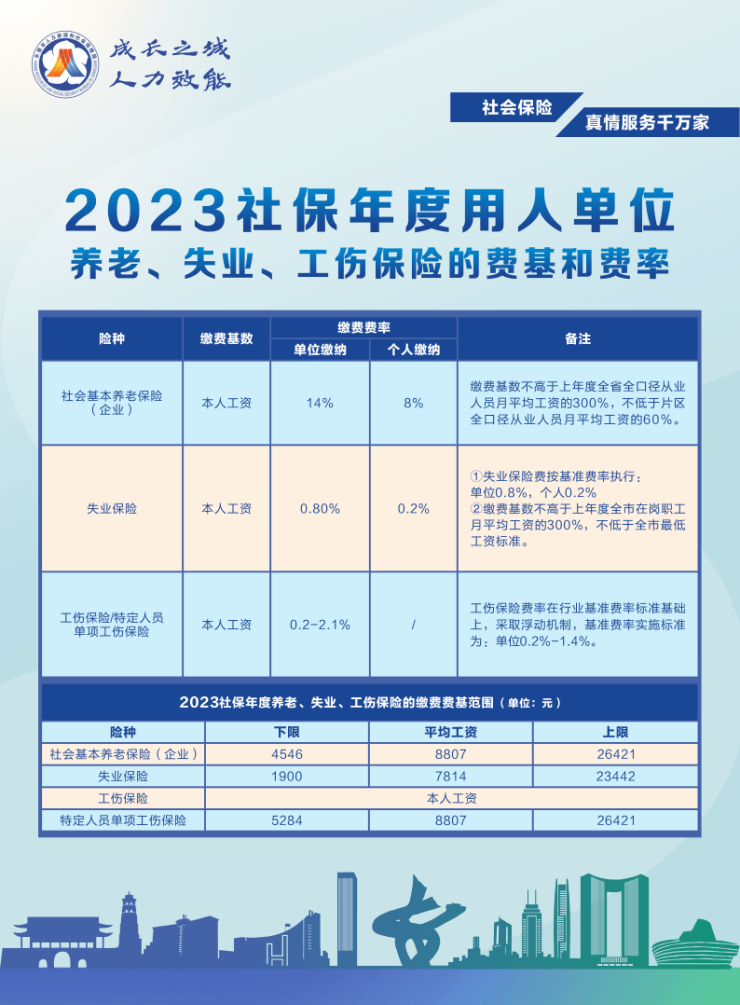 表中不仅有缴费基数,各险种相应的缴费比例也一应俱全。