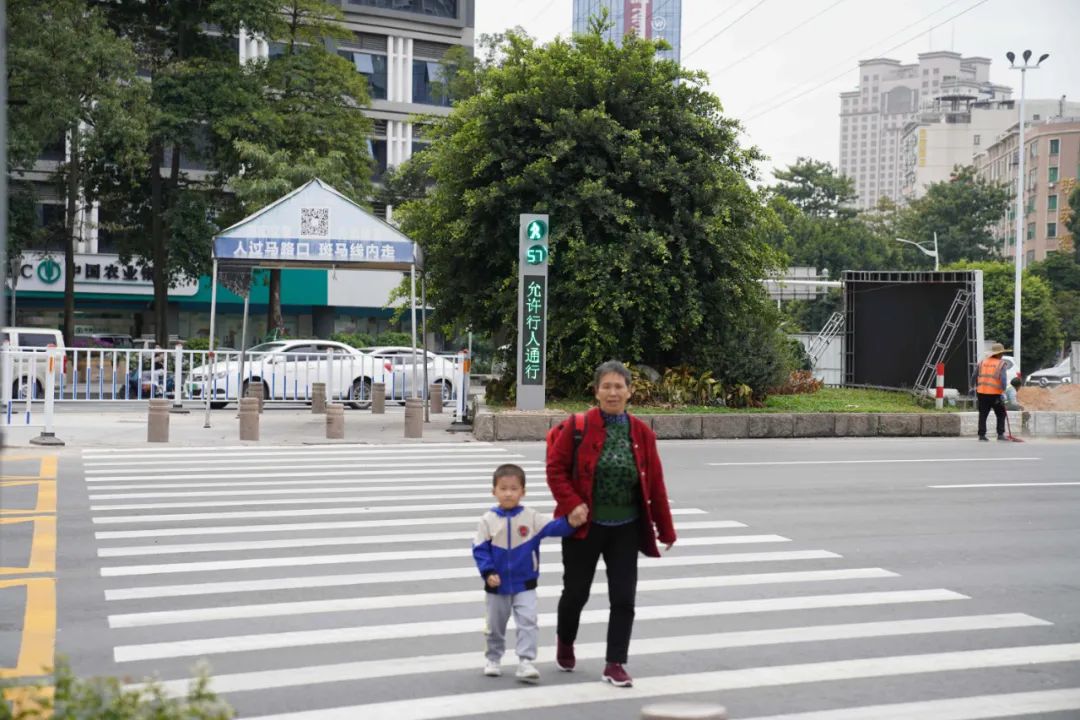 如斑马线的设计,停止线和斑马线之间的安全距离相隔6米,大于普通路口的安全距离;会发声和可视化的智能人行信号灯,让行人过马路更安全;带灯光的信号灯杆,让司机更容易辨别信号灯转换;还有Z形状的过街斑马线等。