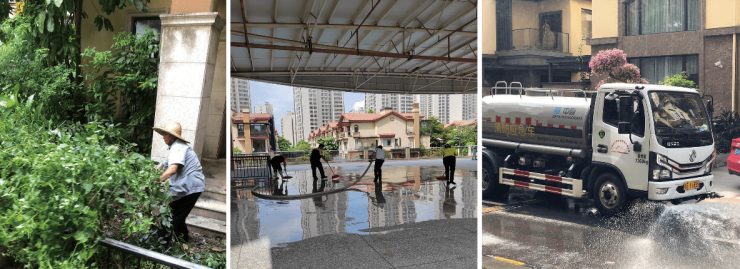 楼栋卫生大清洁、小区道路高压抢清洁、小区草坪大修剪……进驻首月,万科物业便在小区开展“洗脸行动”,修复斑驳墙面、清理楼道装修垃圾、冲洗地库、高压水枪清洗园区地面、空置别墅院子杂草清理。此外,为营造整洁、优美、舒适的生活环境,万科物业启动“绿茵行动”,通过春节花镜打造、灌木栽种、花籽播种提升小区绿化环境。
