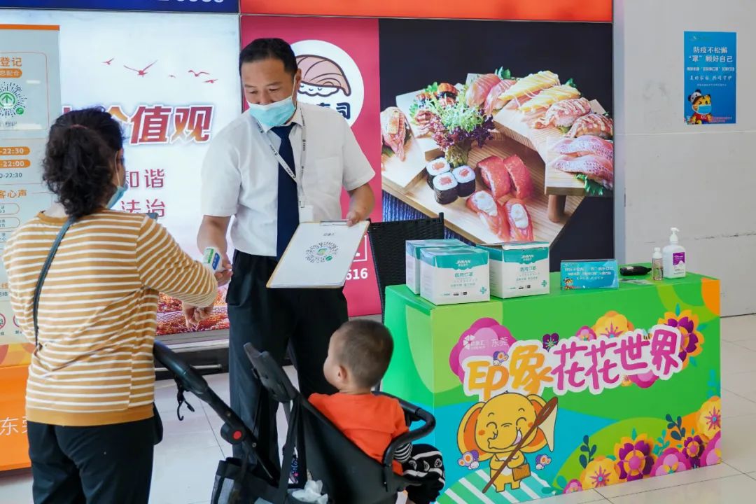 据统计,南城在辖内商超、市场等重点行业场所入口和志愿服务站,设置了300多个宣传服务点,现场摆放了“美好家园 共同守护”南城街道“全民戴口罩”文明行动的统一标识牌。
