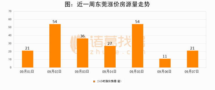 根据诸葛找房数据显示,东莞24小时涨价房源量为21套,较09月06日增加10套,环比上涨90.9%。与此同时,涨价房源占比小幅扩大,业主信心有所提升。