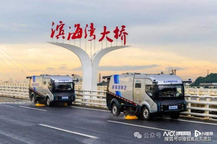东莞首批无人环卫车在滨海湾大桥上路测试。图源滨海湾融媒