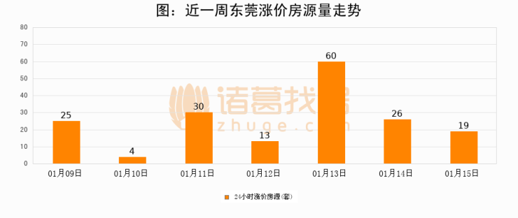根据诸葛找房数据显示,东莞24小时涨价房源量为19套,较01月14日减少7套,环比下降26.9%。与此同时,涨价房源占比小幅回落,对于购房者来说是一个入市窗口期,购房者可抓住时机入市。
