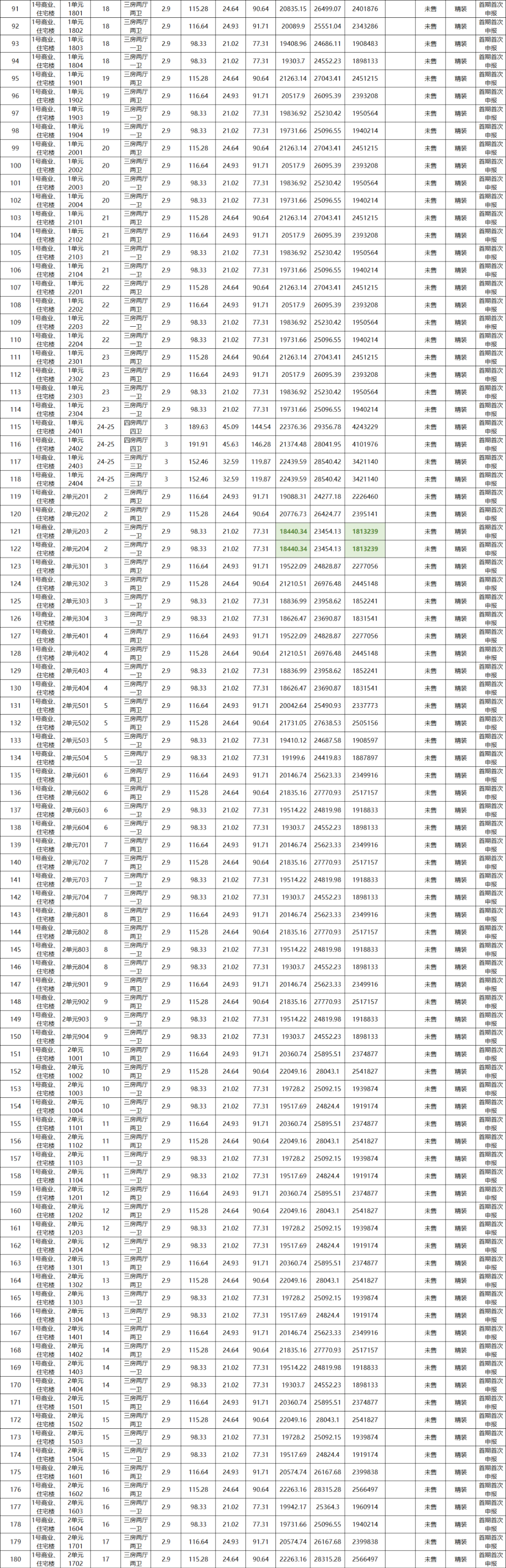 附:万科公园里洋房&别墅备案价信息表