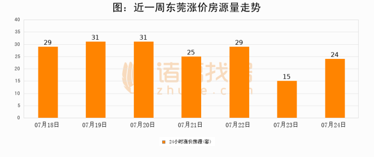 根据诸葛找房数据显示,东莞24小时涨价房源量为24套,较07月23日增加9套,环比上涨60%。与此同时,涨价房源占比小幅扩大,业主信心有所提升。