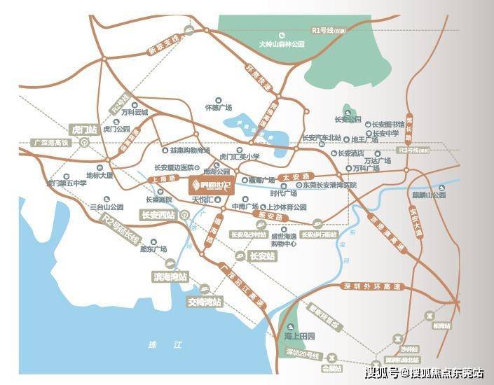 穗莞深城轨“长安西站”距项目仅约2公里,1站即可抵达深圳(沙井西站);3站抵达宝安大空港(深圳机场北);4站抵达深圳宝安机场(深圳机场站);9站抵达广州,让工作与生活的边界变得模糊,同城生活不再是梦想。
