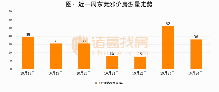 根据诸葛找房数据显示,东莞24小时涨价房源量为36套,较10月23日减少16套,环比下降30.8%。与此同时,涨价房源占比小幅回落,对于购房者来说是一个入市窗口期,购房者可抓住时机入市。