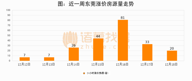根据诸葛找房数据显示,东莞24小时涨价房源量为20套,较12月17日减少13套,环比下降39.4%。与此同时,涨价房源占比小幅回落,对于购房者来说是一个入市窗口期,购房者可抓住时机入市。