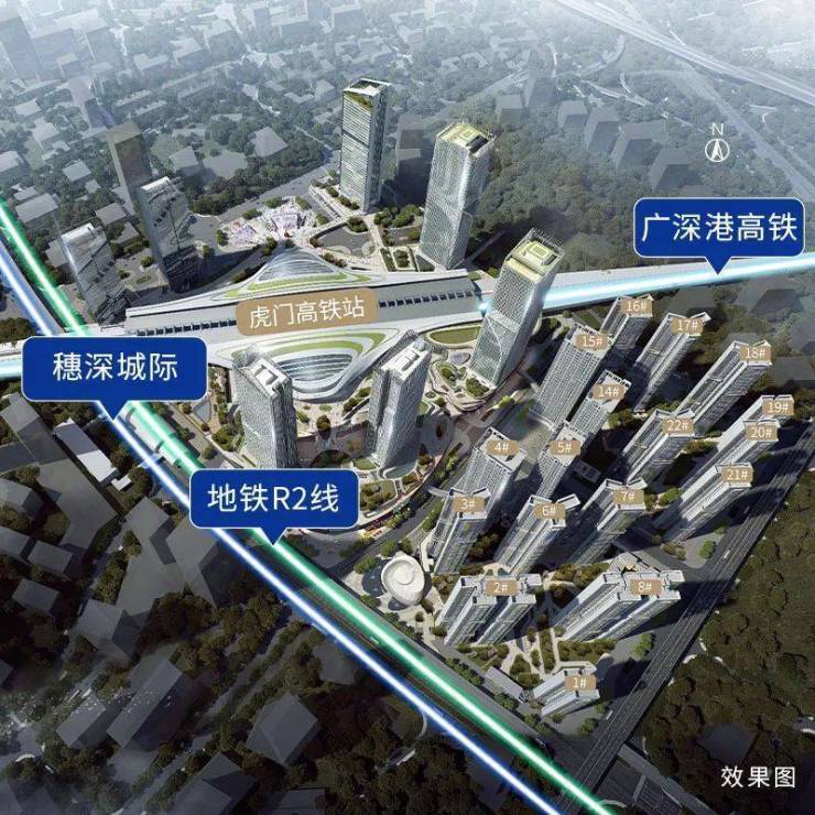 【东莞地铁R2线】连接东莞南北经济大动脉,25分钟抵达东莞主城区,延长线预计今年年底动工,2024年开通,与滨海湾TOD相连,未来还会接驳深圳地铁20号线。