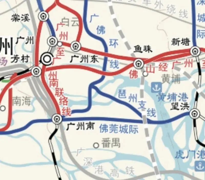 较新公告显示,佛山段的起点将由东平新城往南延伸至乐从,与广佛江珠城际接通。