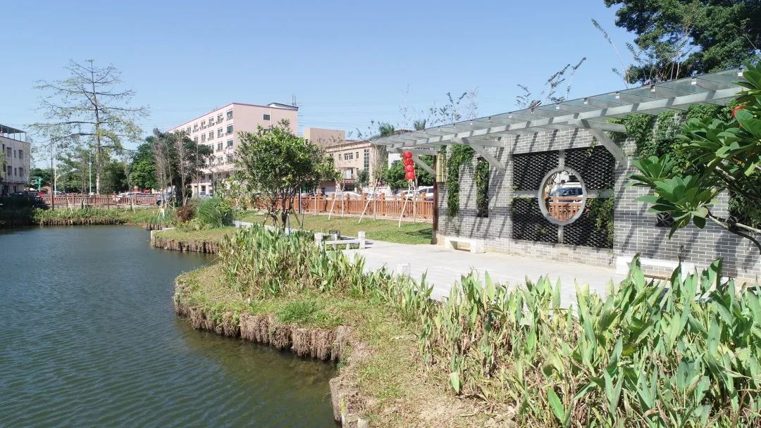 公园面积约2000平方米,改造增设休闲步道、观景平台、休闲坐凳、滨水步道、水岸护栏、鱼塘驳岸,成为附近居民茶余饭后的休闲好去处。