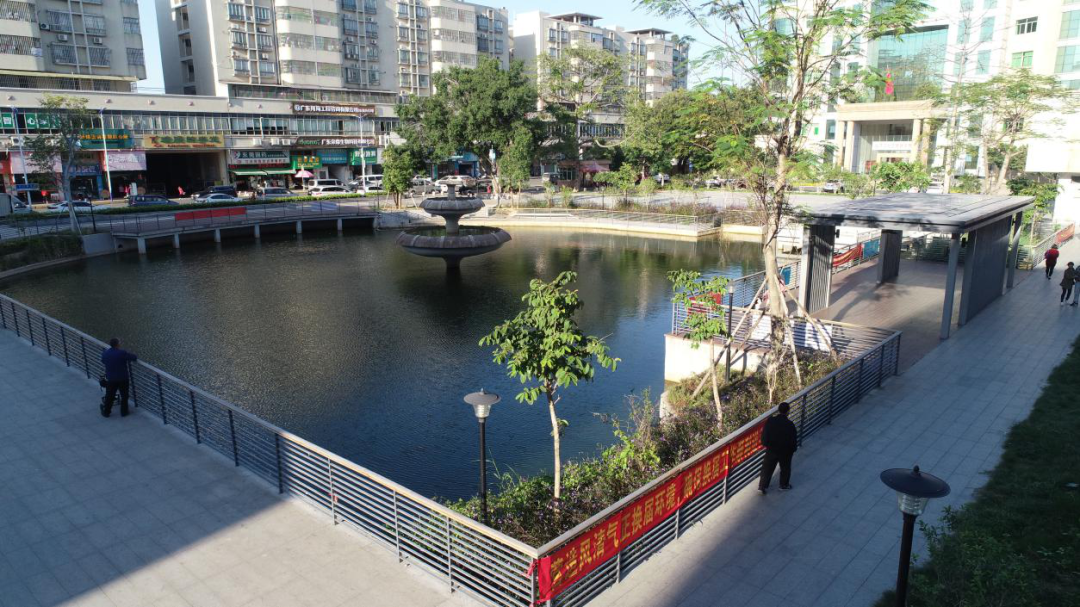 位于万江社区党群服务中心前,公园面积约500平方米,改造增设临街广场、市民广场以及生态停车场,翻新水池池壁以及增加周围亭廊园建,铺设相关水电安装,在水池四周布置绿植,进一步提升城市景观。