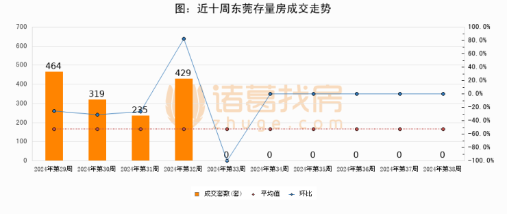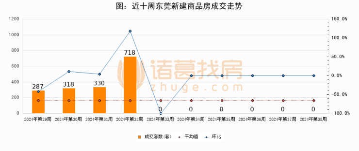进入2024年第38周(09月16日-09月22日),东莞新建商品房成交0套,较上周持平