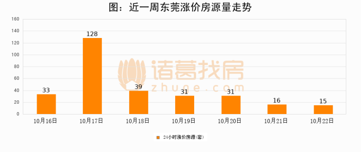 根据诸葛找房数据显示,东莞24小时涨价房源量为15套,较10月21日减少1套,环比下降6.2%。与此同时,涨价房源占比小幅回落,对于购房者来说是一个入市窗口期,购房者可抓住时机入市。