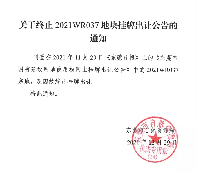 继塘厦诸佛岭社区地块和长安沙头社区的两宗地块之后,今年东莞又有一宗热门商住地块终止出让了!