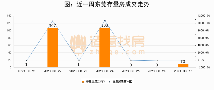 从存量房来看,2023年08月27日东莞存量房单日成交10套,比昨日增加10套,环比上涨0%。从近一周存量房成交来看,东莞存量房日均成交套数为32套,08月27日单日成交10套,低于近一周平均水平68.8%。