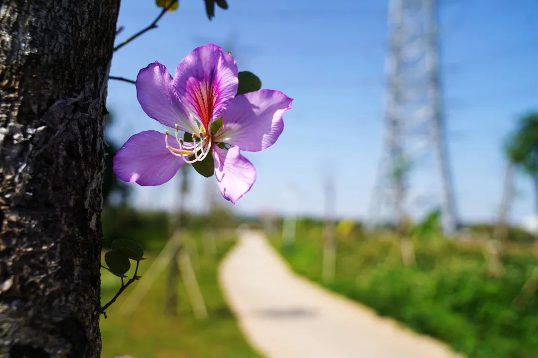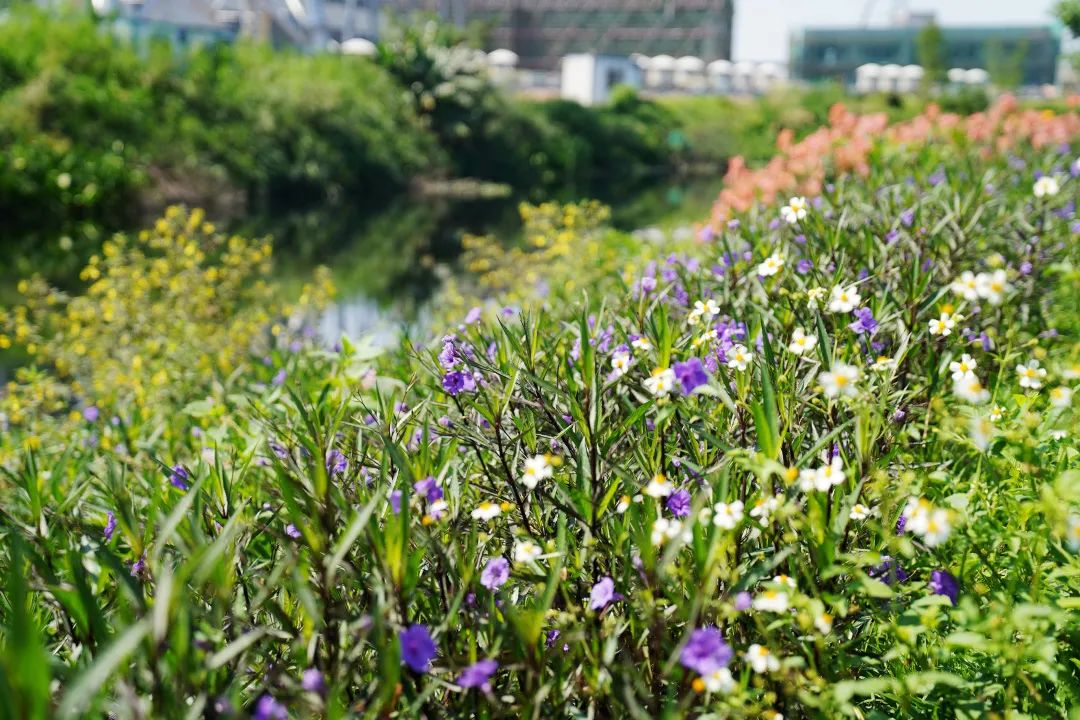 绿道两旁种满鲜花绿植