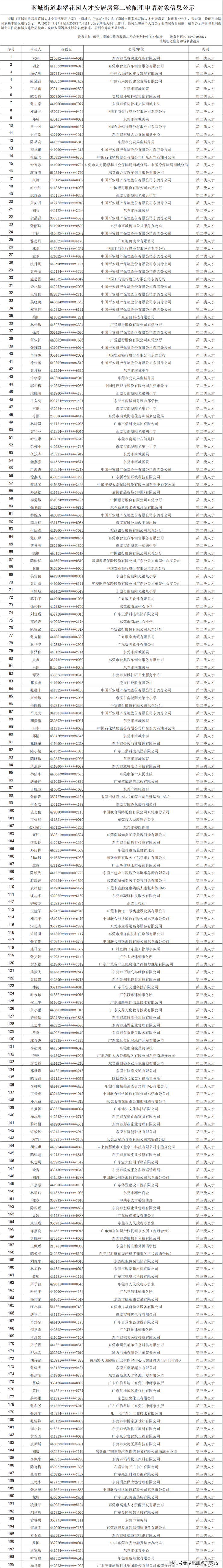 此次公示的安居房申请人经过部门严格审核,符合《南城街道翡翠花园人才安居房配租方案》(南城办〔2025〕6号)中第一类、第二类和第三类配租条件的优秀人才。