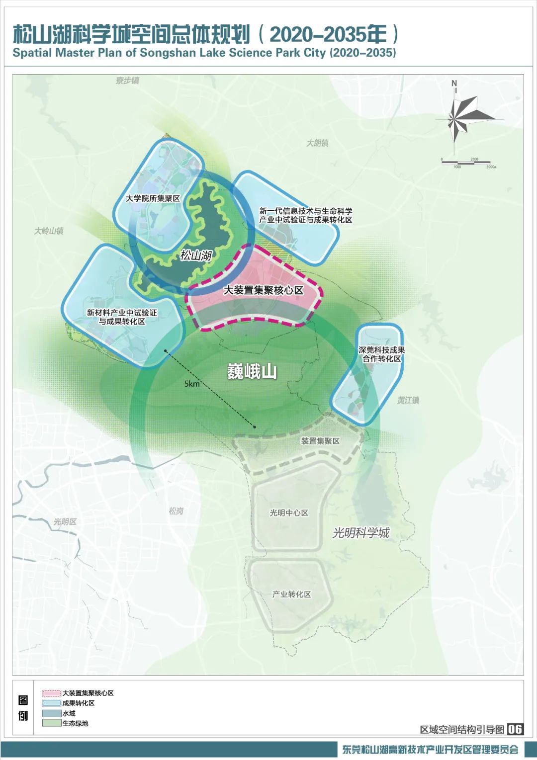 打开松山湖科学城规划蓝图,“北湖南山、一核四区”的空间布局清晰可见。其中,“一核”即为大装置集聚核心区,计划在巍峨山北麓及背山面湖地带,进一步集聚高级重大科技基础设施等,形成重大科技基础设施带动的重大原始创新策源地。