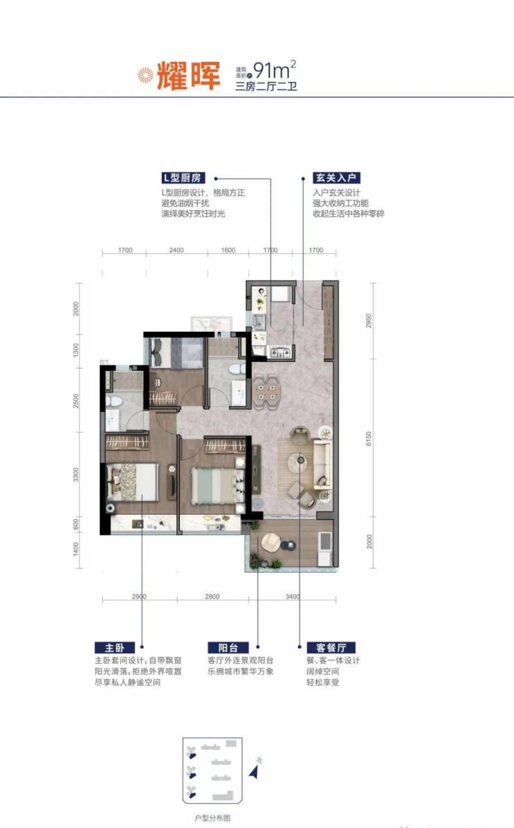 【耀晖】建筑面积约91㎡:三房二厅二卫