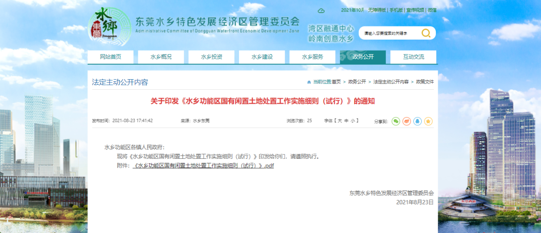 为贯彻落实市委关于优化市直管镇体制改革的工作部署,强化功能区用地规划统筹,在市自然资源局及司法局等部门全力支持指导下,水乡管委会主动谋划,在守底线的基础上先行先试,创新和完善闲置土地处置机制。经过为期一年的调研和反复论证,日前出台了《水乡功能区国有闲置土地处置工作实施细则(试行)》。