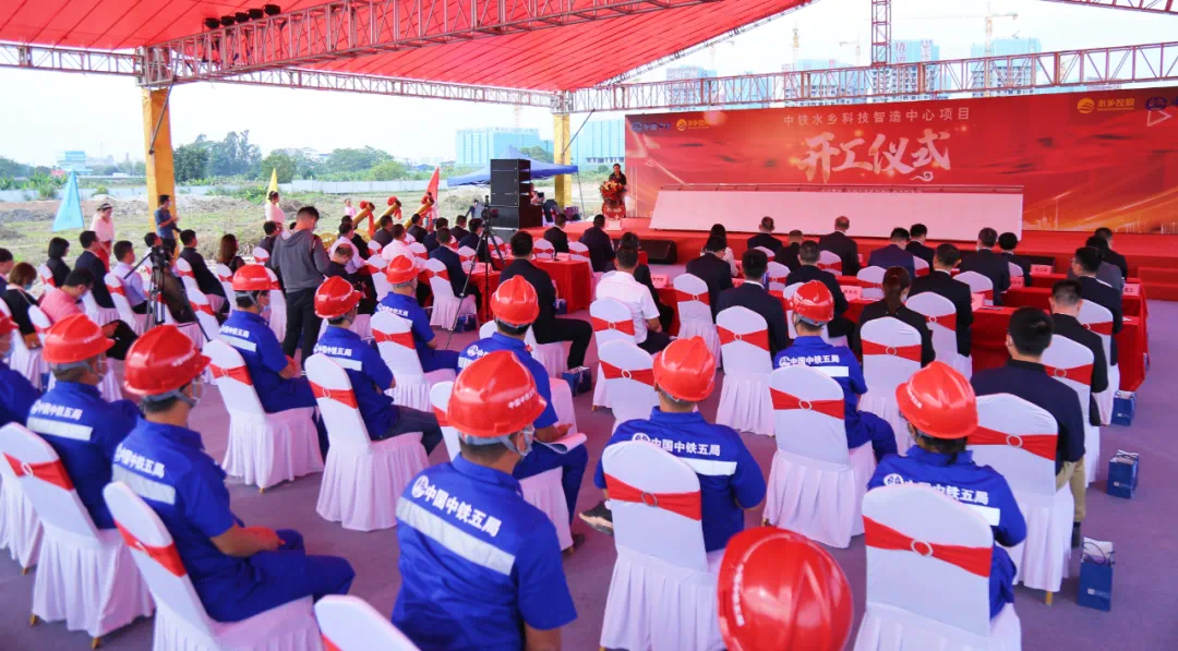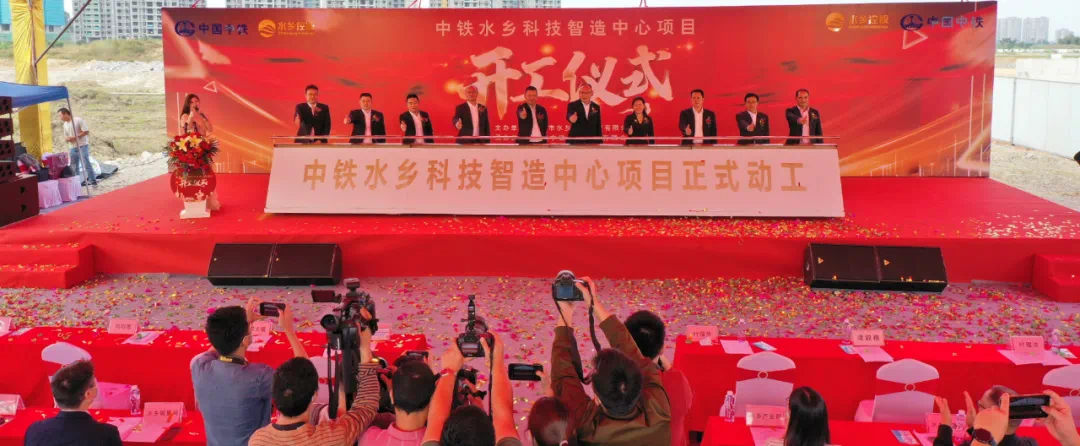 11月15日,由东莞水乡控股公司和中铁南方投资集团联合投资、中铁五局承建的中铁水乡科技智造中心项目开工仪式在麻涌站单元水乡大道成功举办。