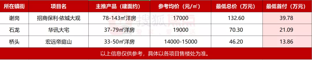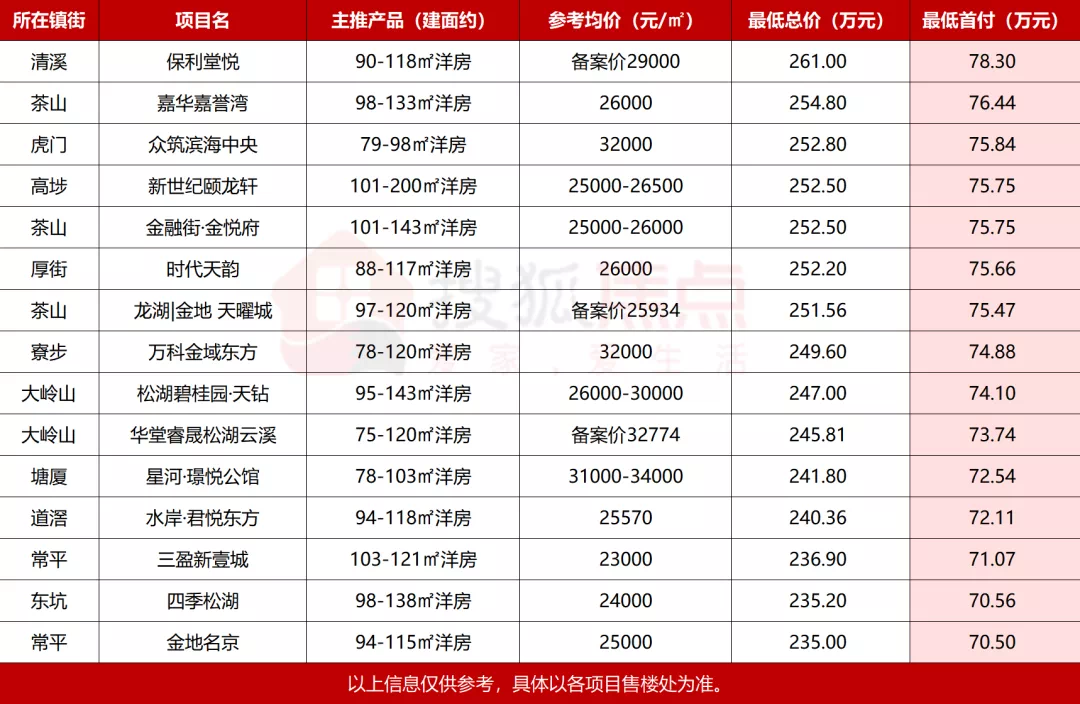 据小编不完全统计,首付为60-70万元的楼盘有18个,可选择的镇街比较多。