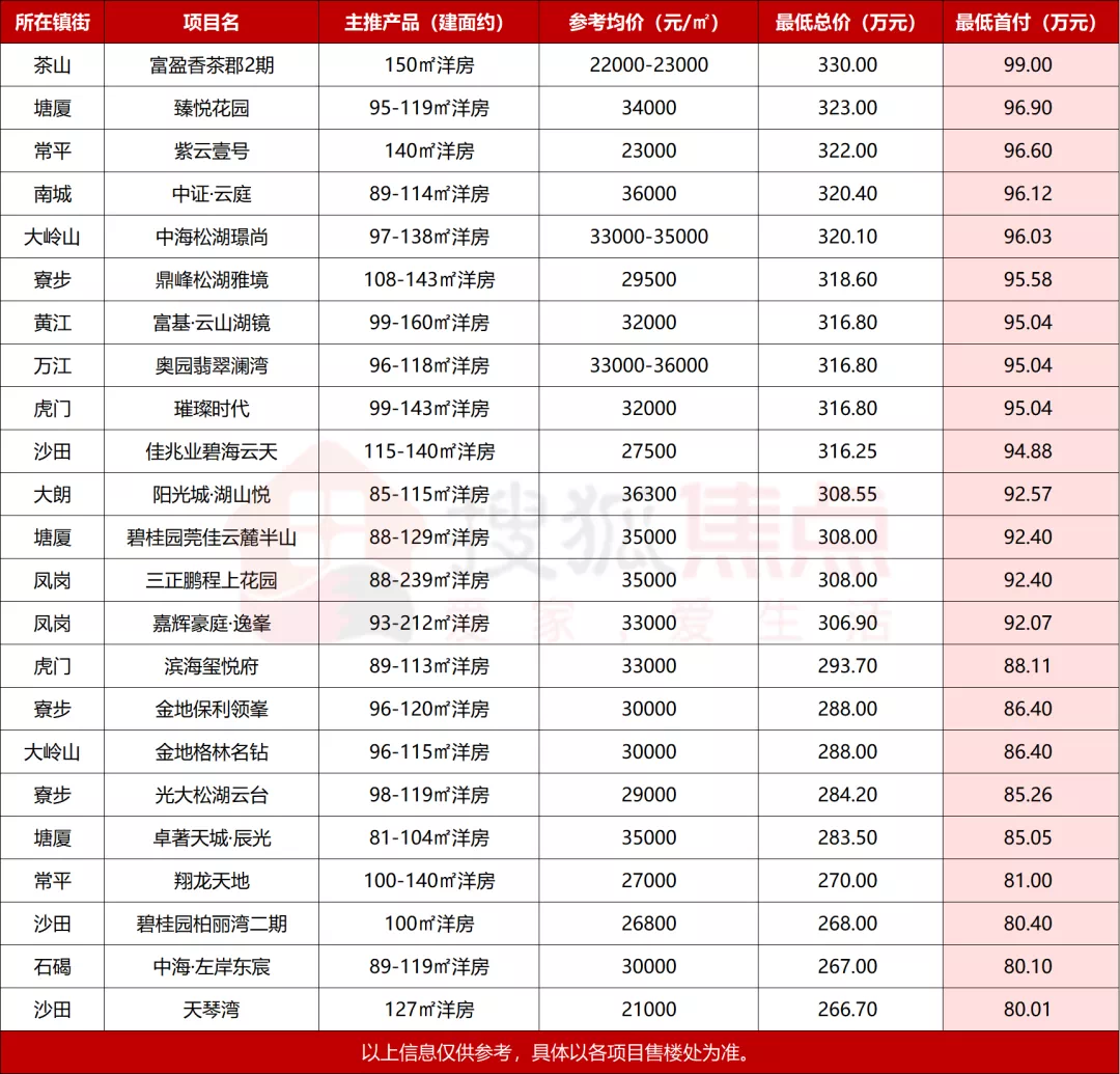 刚需必看!年末首付金字塔图出炉!首付100万以内,东莞还有这些房可选!