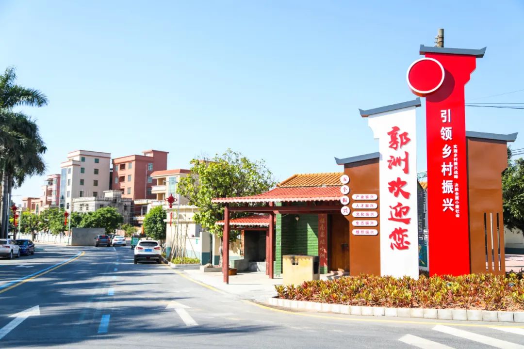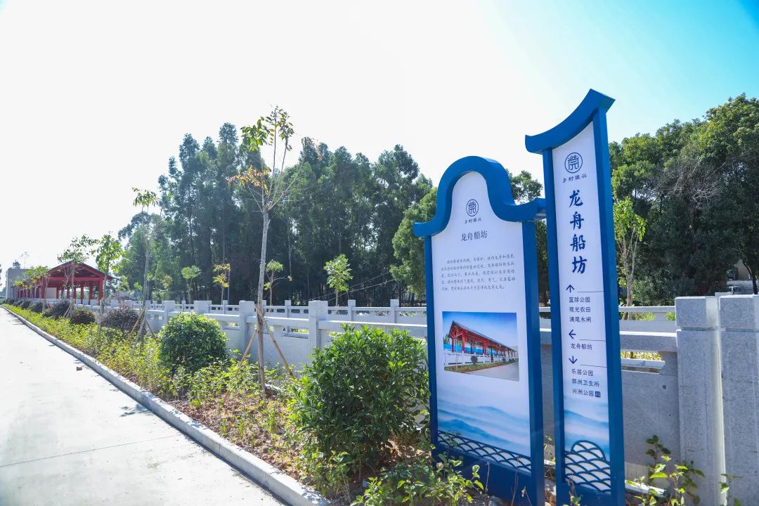 进入中堂郭洲村,“引领乡村振兴”几个红色大字醒目显眼,一旁的兴洲公园绿树环绕,小河边杨柳依依。而红色故居、风雨球场、龙舟船坊、七夕广场、江边渡口等更彰显出郭洲村在特色文化建设中再现美丽乡村的新气象。