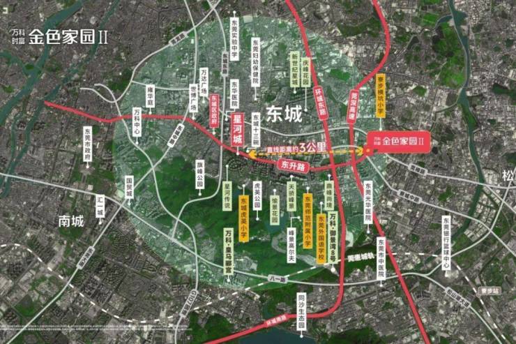 项目位于环城路板块,紧邻东莞传统豪宅区,距离星河城仅约3公里,可享星河城、东城十三碗、万达、世博商圈等城市核心繁华配套 同时,省一级横坑小学、中山大学附属外国语学校、东华医院、光华医院等5所教育院校、4大甲级医院等城市级配套环伺。