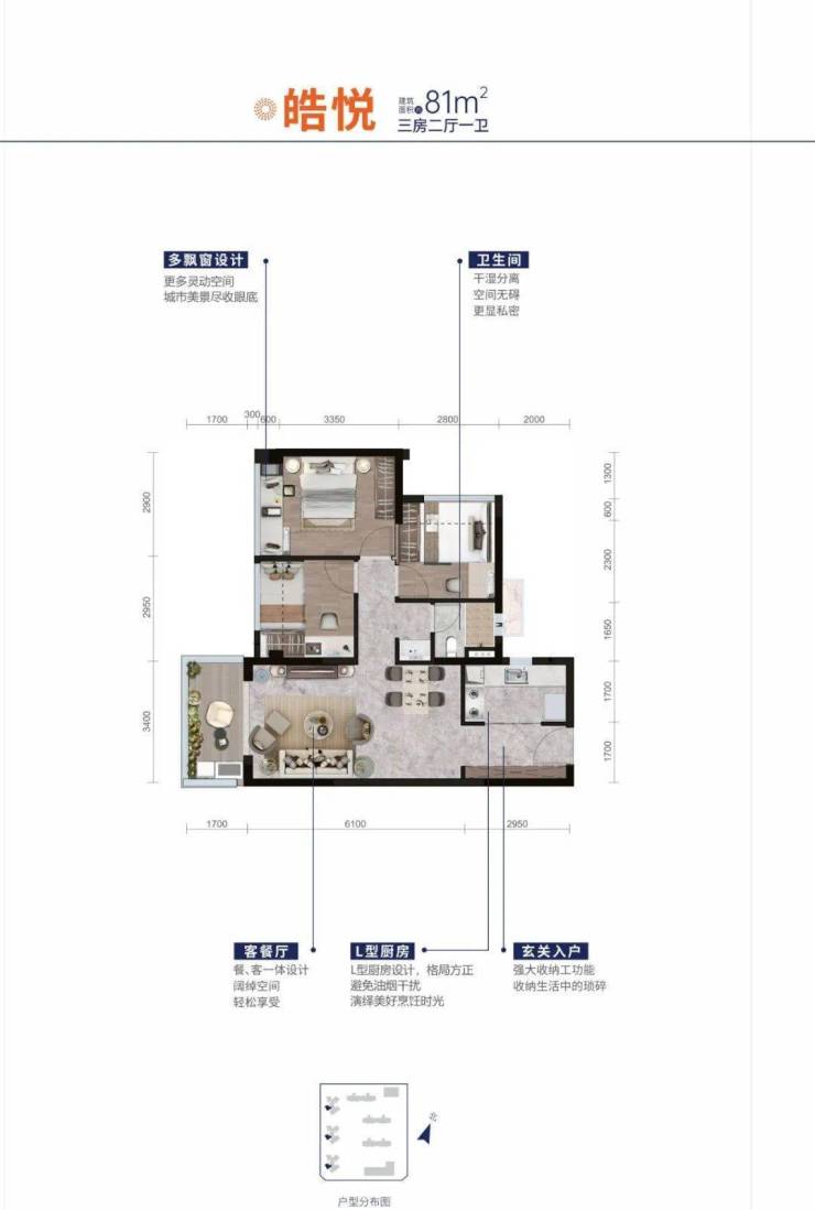 【皓悦】建筑面积约81㎡:三房二厅一卫