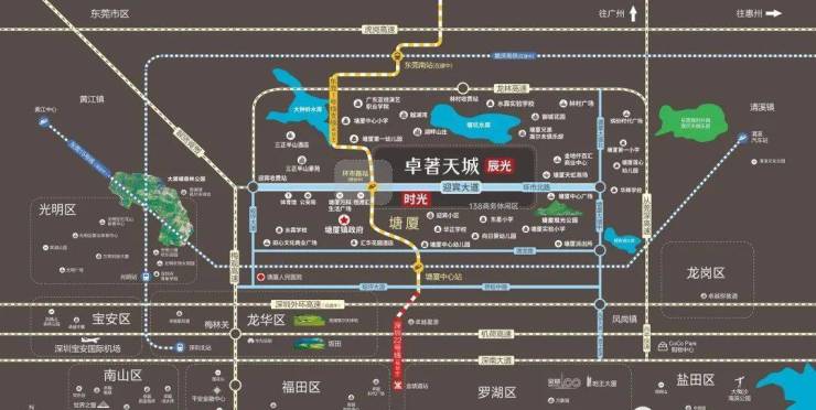 卓越启城,地铁(规划中)3站到深圳:卓著天城·辰光,坐落莞深门户——塘厦新城市中心,外享醇熟商圈,尽享中心区全盛配套,内拥临深首创下沉式庭院;毗邻地铁R1线环市路站,3站到深圳,尽享莞深同城便捷生活,投资自住两相宜。