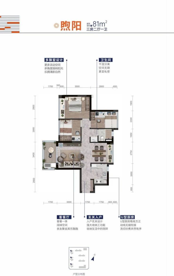 【煦阳】建筑面积约81㎡:三房二厅一卫