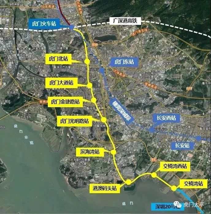 先来看看东莞地铁2号线三期的大致情况:2号线三期工程始于虎门火车站,往南沿连升路穿越虎门镇中心区,再沿滨海大道进入沙角半岛,终于交椅湾半岛。
