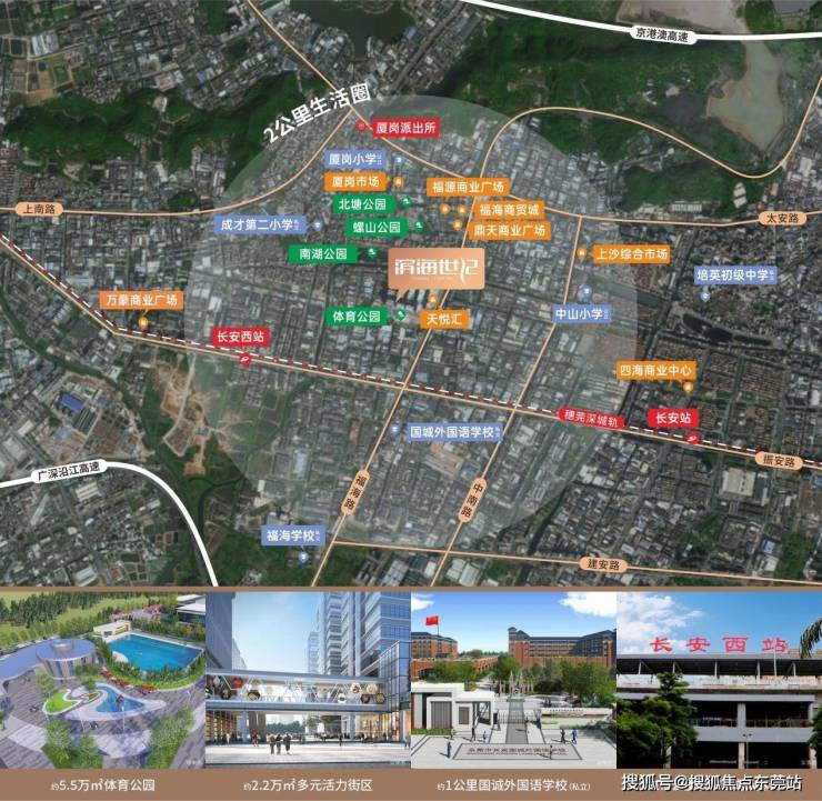 穗莞深城轨“长安西站”距项目仅约2公里,1站即可抵达深圳(沙井西站);3站抵达宝安大空港(深圳机场北);4站抵达深圳宝安机场(深圳机场站);9站抵达广州,让工作与生活的边界变得模糊,同城生活不再是梦想。