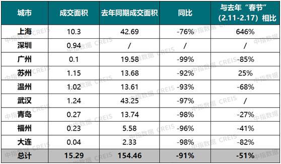 此外,在二线城市中,与去年春节相比,大连、温州新建商品住宅成交面积降幅超过五成。