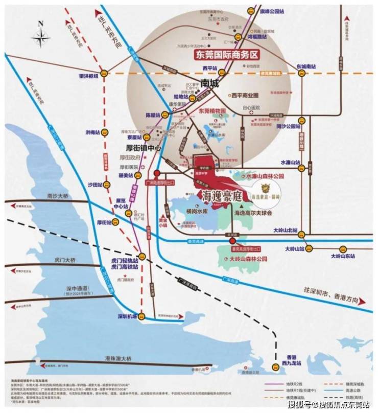 海逸豪庭地处南城南,毗邻东莞CBD,坐落于水濂山生态豪宅板块,占据城市核心资源。在这里,可以享受南城与厚街双城繁华商圈。从项目出发,便捷到达南城总部基地,还能前往汇一城、国贸,尽享主城精粹;如果你觉得只有南城商圈还不够,这里还有厚街万达商圈,可以与亲人朋友来一场吃喝玩乐的一条龙狂欢。