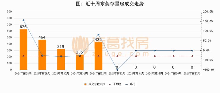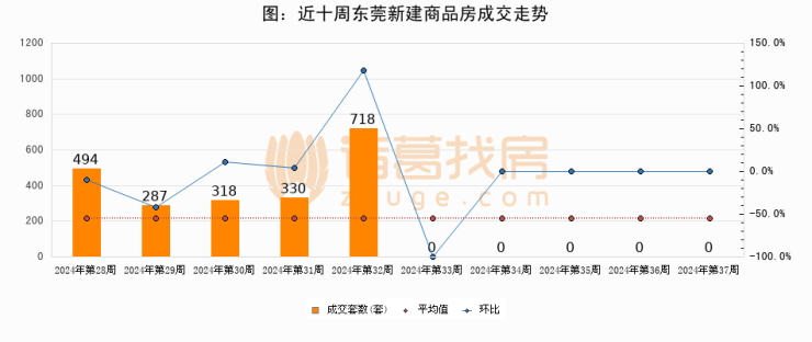进入2024年第37周(09月09日-09月15日),东莞新建商品房成交0套,较上周持平